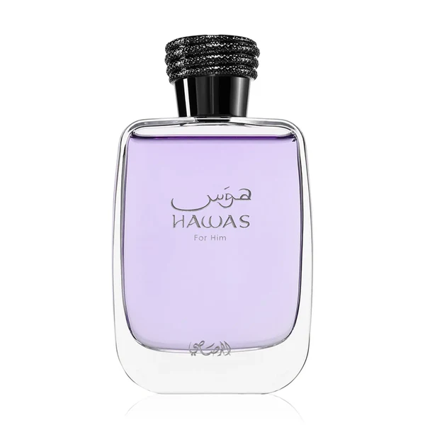 Rasasi Hawas blends fresh citrus, apple and cinnamon with fruity plum and aquatic notes, finishing with ambergris, musk and woody accords.